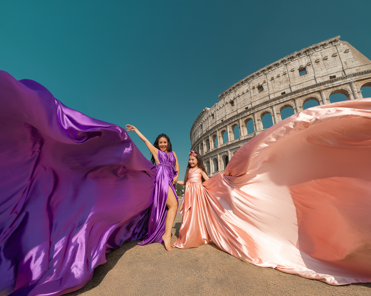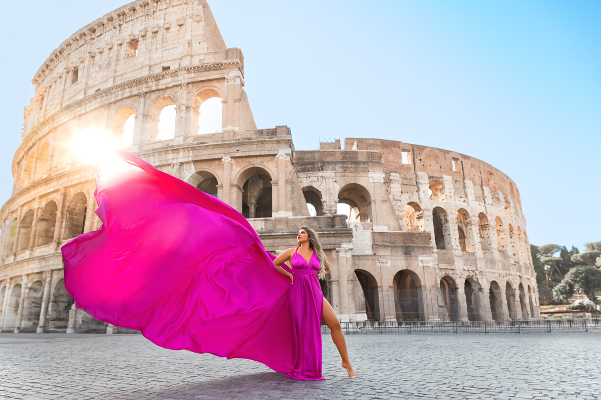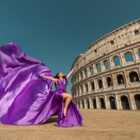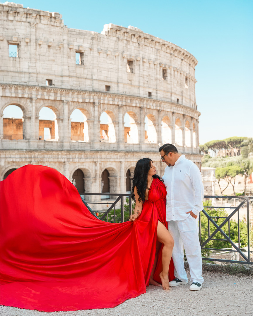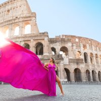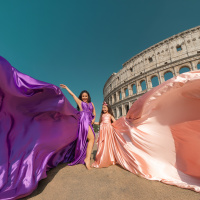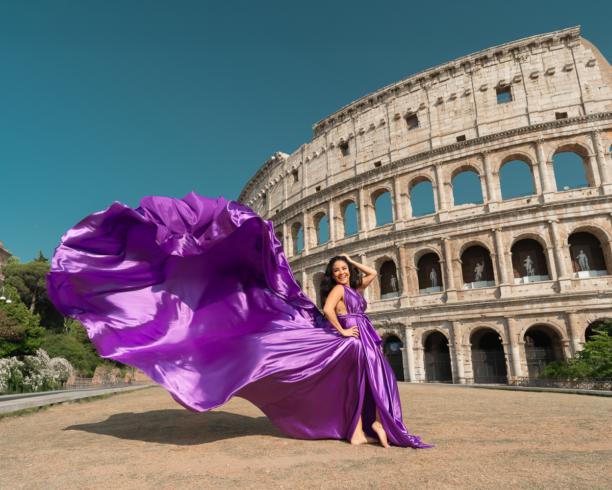 Rome Photo Shoot – Where history becomes your personal backdrop. Wander through two millennia of iconic landscapes, from the Colosseum's mighty arches to the Trevi Fountain's glittering waters, captured at their most magical moments. Flowing fabrics add movement against Rome's solid grandeur