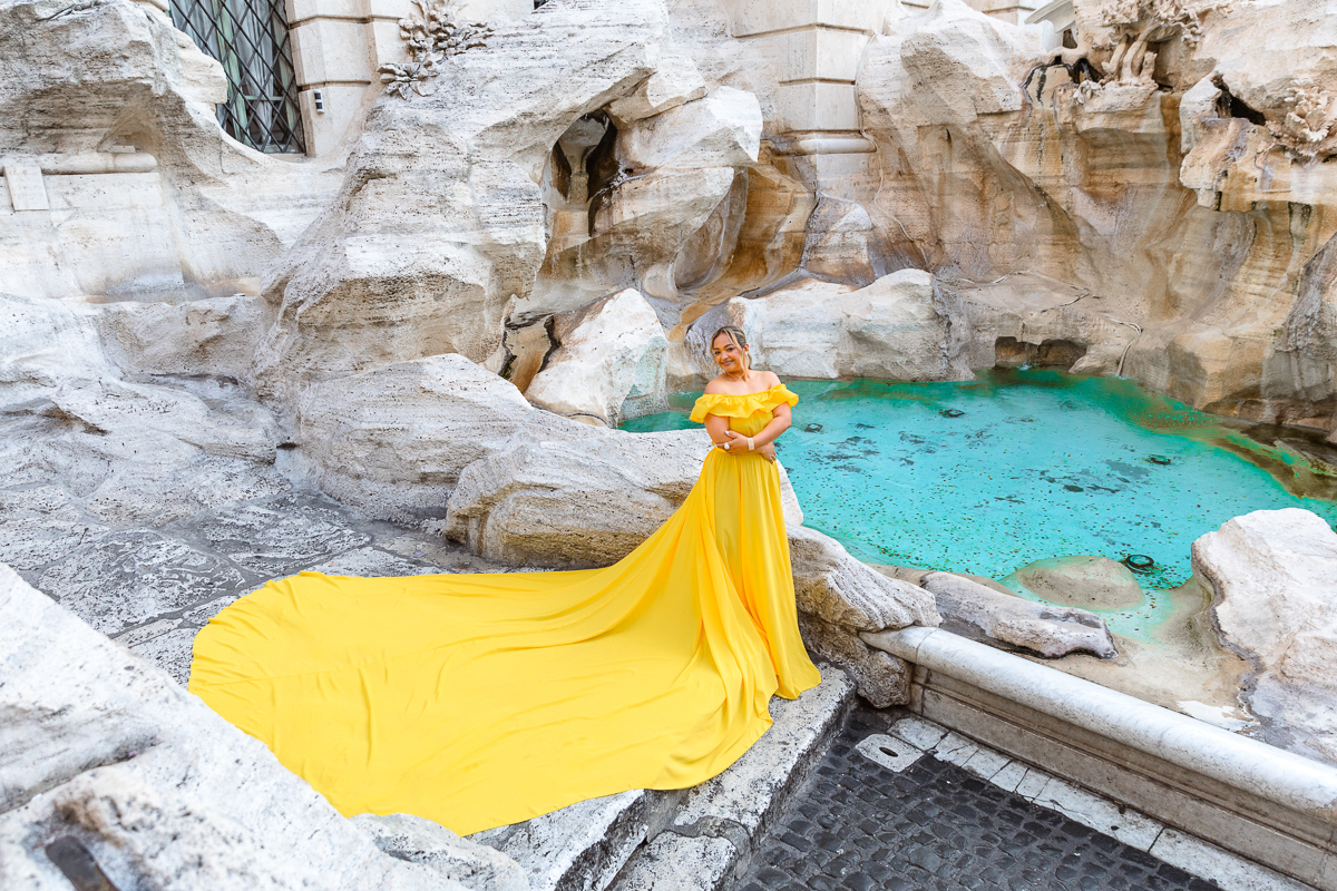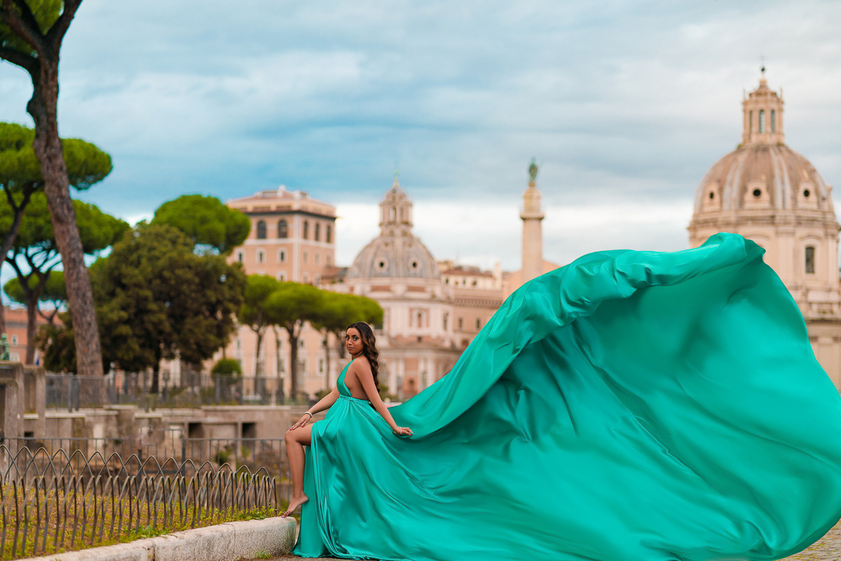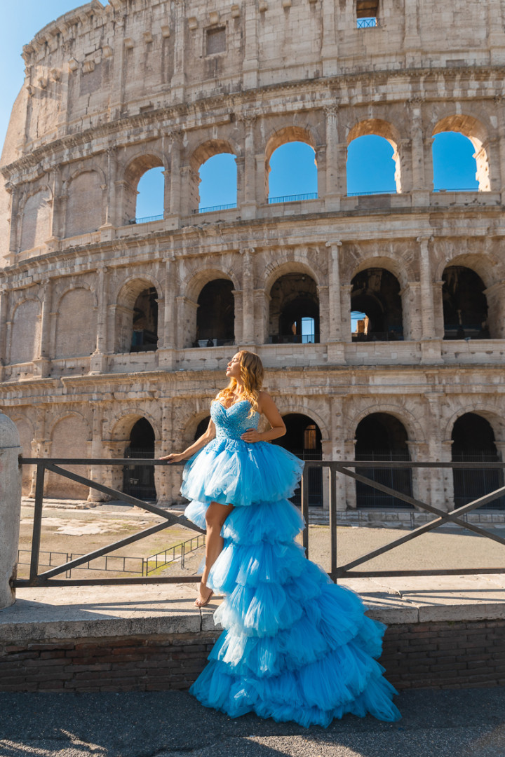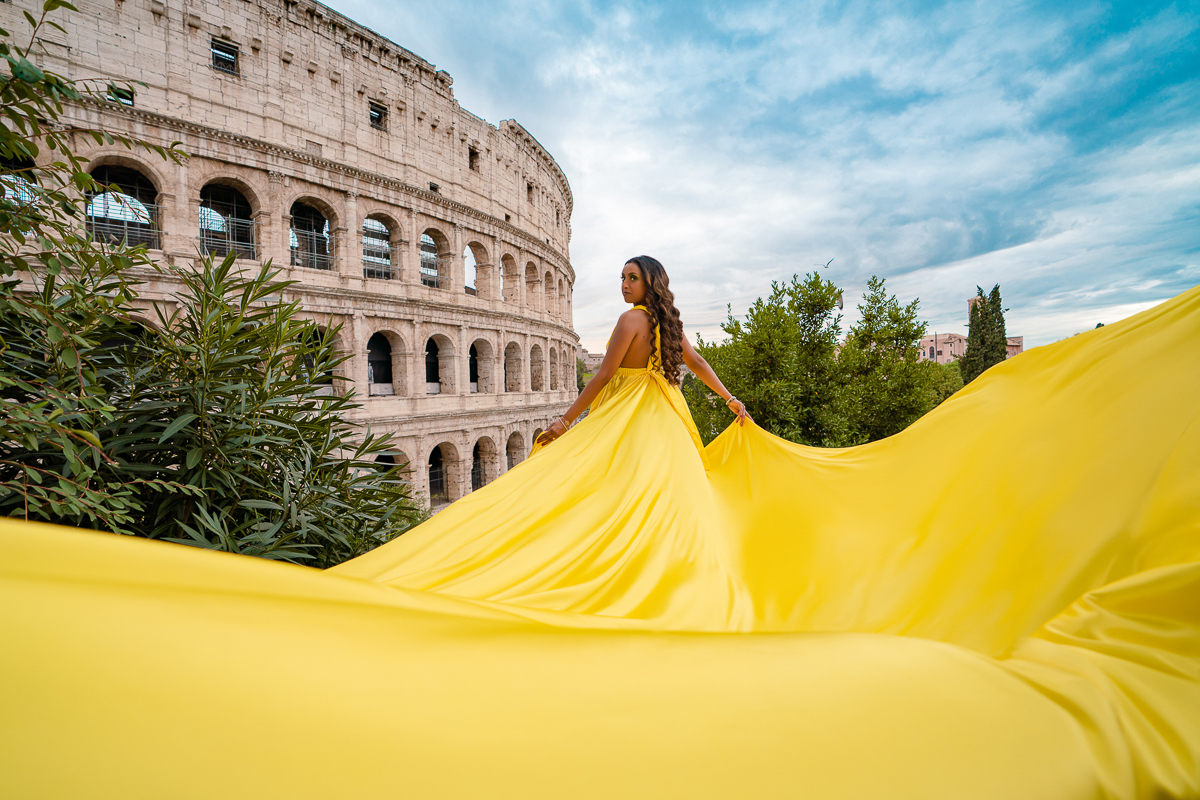 Rome Photo Shoot – Where history becomes your personal backdrop. Wander through two millennia of iconic landscapes, from the Colosseum's mighty arches to the Trevi Fountain's glittering waters, captured at their most magical moments. Flowing fabrics add movement against Rome's solid grandeur