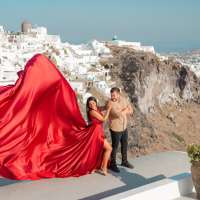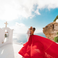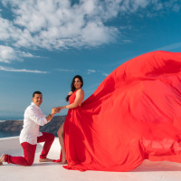 If you want to surprise the bride and present her with the coveted ring in an unusual setting, book a private flying dress photoshoot in Santorini or any other available location. She will remember this day for the rest of her life, and gorgeous pictures will collect thousands of likes on social networks and will be a reminder of these charming events years later.
