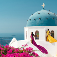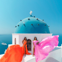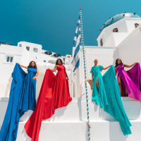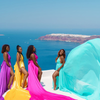 Due to the specificity of the island, it won't be possible to shoot groups bigger than 3-5 persons at one time since walking in the tiny streets of Santorini with such a big group is very uncomfortable for the group itself and for people trying to have rest in a quiet area of the hotels around. For this reason, a kind of schedule for the shoot has to be made: the entire group must be divided into several parts of 3-5 people. After one part has finished the shoot another part arrives. If you want a picture of the whole group that will be possible at the very end of the photoshoot or at the very beginning of it