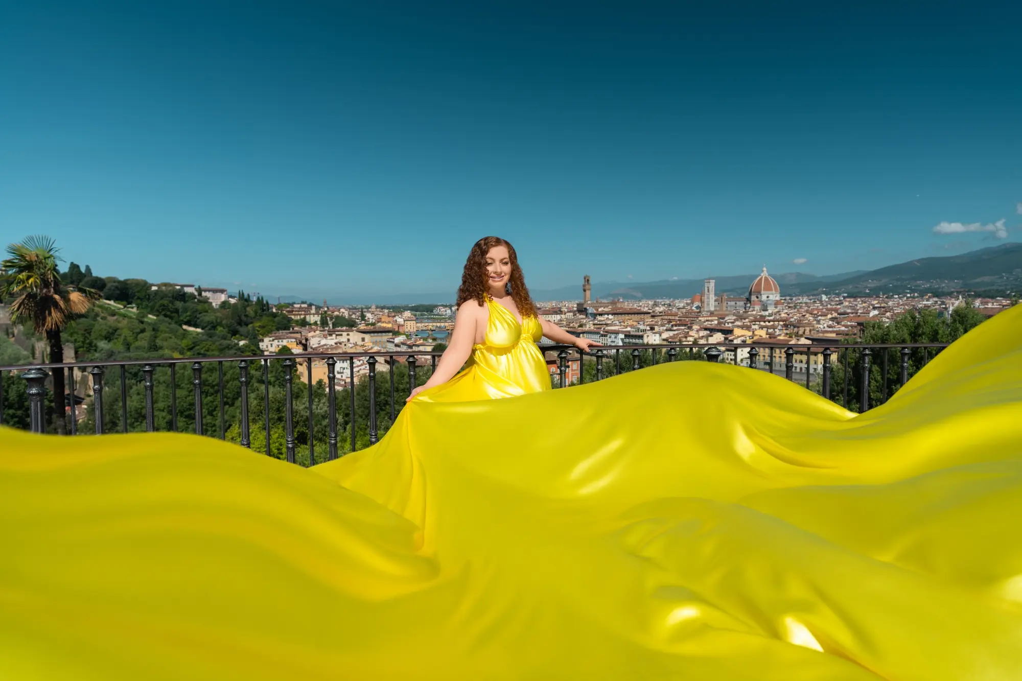 During your expecting session, you’ll be moving, posing, and standing for long periods, often across various settings, whether it’s serene beaches in Hawaii, romantic streets in Santorini, or lush gardens in Italy. In such a dynamic environment, it’s essential to feel comfortable, not just in your gown but throughout the entire shoot. This is where the professional photographer and assistant are crucial.