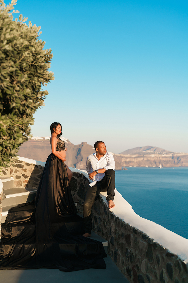 How about a flying dress photoshoot somewhere on the island of Santorini or among the natural beauties of Italy? Such an image will fit perfectly for a future mother and help reveal her airy, quivering state.